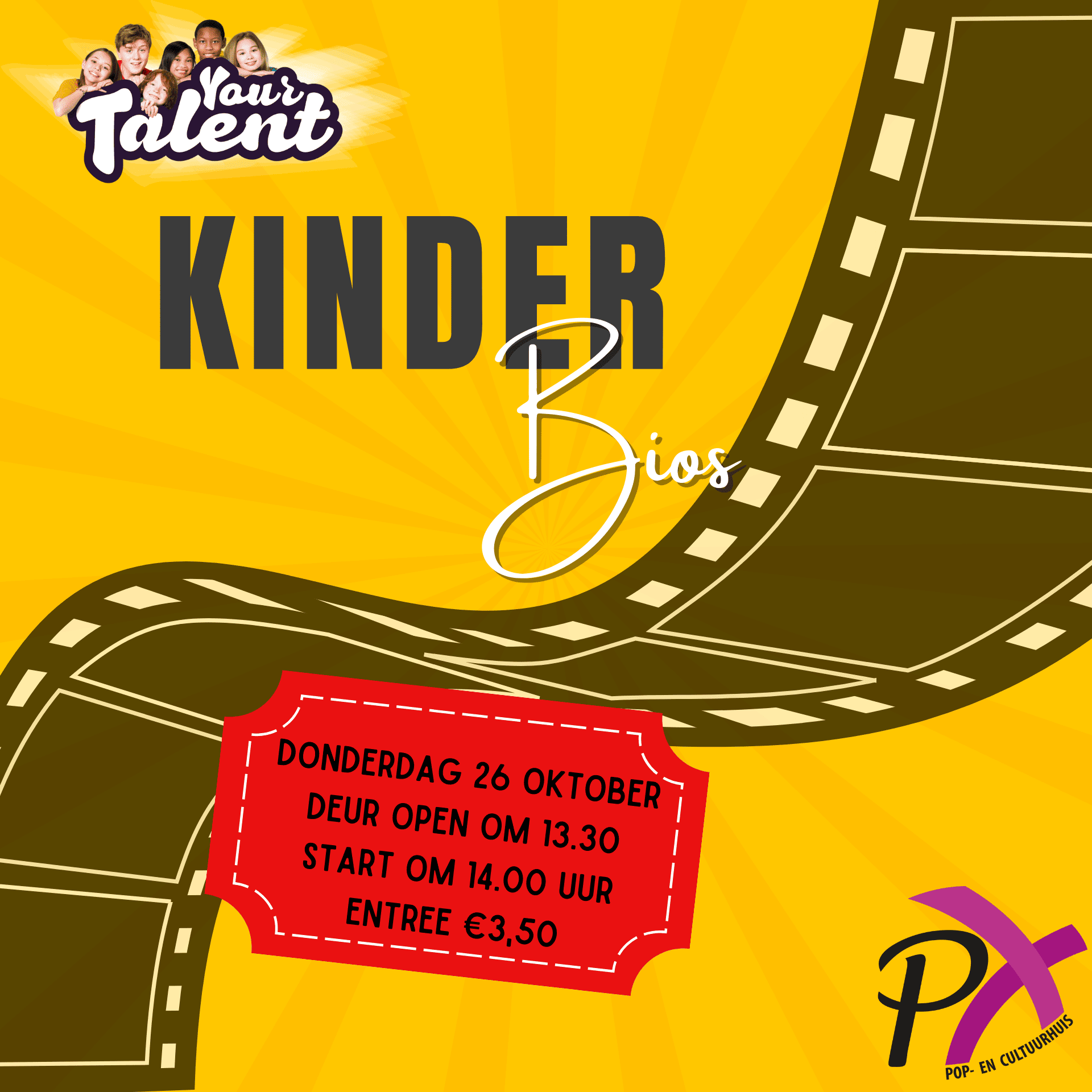 Op donderdagmiddag in de herfstvakantie kan je in de PX naar de PX kinderbios. Tijdens deze filmmiddagen draaien we de nieuwste en meest bijzondere films voor kinderen vanaf 4 jaar. Houd de socials in de gaten voor meer informatie over de film. Entree is €3,50 inclusief limonade.