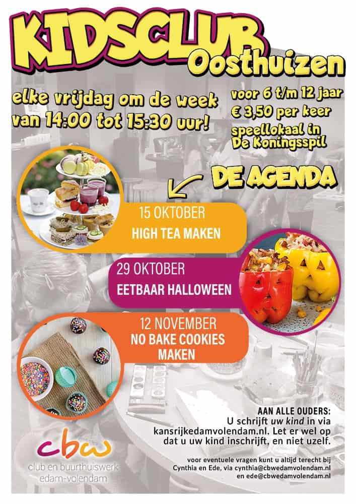 Op vrijdag 15 oktober gaan we een high tea maken bij de Kidsclub in Oosthuizen. Eerst lekkere hapjes maken, en daarna met een kopje thee kunnen we onze eigen gemaakte hapjes lekker opeten!