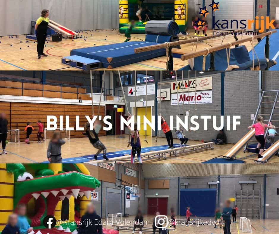 Maandag 30 januari gaan wij weer een Billy’s mini instuif houden, dit keer in de MFA in Oosthuizen. Dit houdt in dat wij voor de kinderen tussen de 4-6 jaar allemaal verschillende attributen uitzetten waar ze vrij mee kunnen spelen, klimmen, klauteren, voetballen etc.